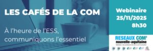 Notre fédération Réseaux Com’ Nouvelle-Aquitaine vous propose un nouveau Café de la Com sur le thème : « À l’heure de l’ESS : communiquons l’essentiel ! »