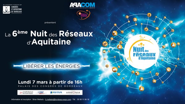 Le Lundi 7 mars, l’APACOM a lancé la 6e édition de la Nuit des Réseaux d’Aquitaine, au Palais des Congrès et Expositions de Bordeaux, dès 16 heures avec un concours de présentation des réseaux. L’événement s’est terminé avec le traditionnel dîner placé qui facilite les nouvelles rencontres. Retour sur les temps forts de ce rendez-vous incontournable des adhérents des réseaux professionnels, élargi cette année à la Grande Région Aquitaine Limousin Poitou-Charrentes et qui ne cesse de prendre de l’ampleur.