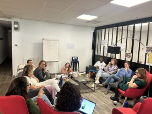 Parmi les idées qui ont marqué la réunion, le groupe de travail #3 a proposé de créer un journal de bord, un espace vivant pour raconter le chemin parcouru par le pôle et par ses membres. L’objectif serait de mettre en lumière la diversité des initiatives. : les projets en cours, les petites victoires, les moments partagés. Ce journal deviendrait la mémoire vivante de la transition à l’APACOM mais aussi une vitrine du collectif. Chacun·e pourrait y contribuer, à la manière d’un carnet de voyage, avec des récits, des photos, des témoignages. Le groupe travaille actuellement sur une note d’intention pour préciser le format (trimestriel, participatif) et choisir la plateforme la plus adaptée.