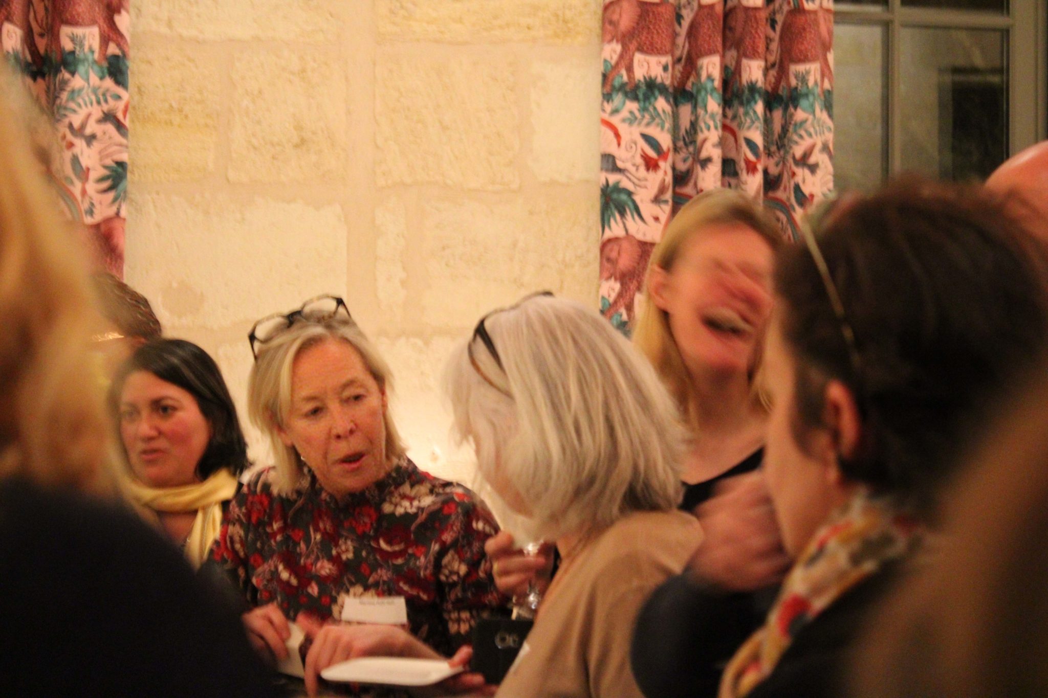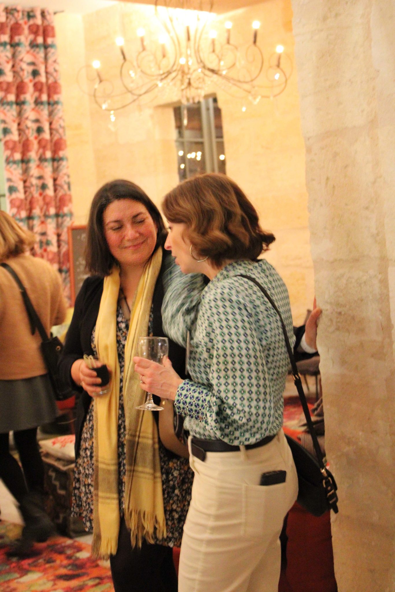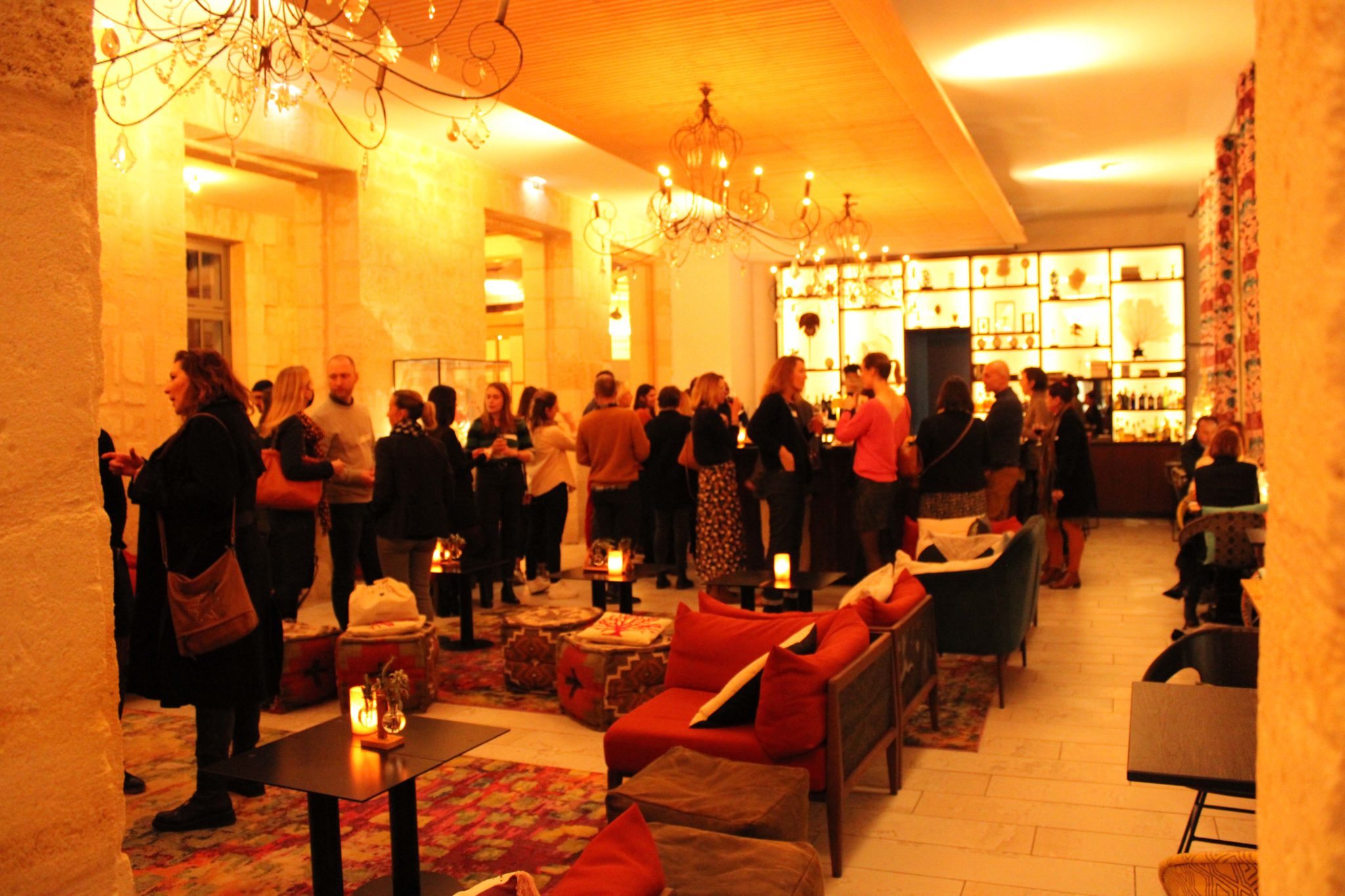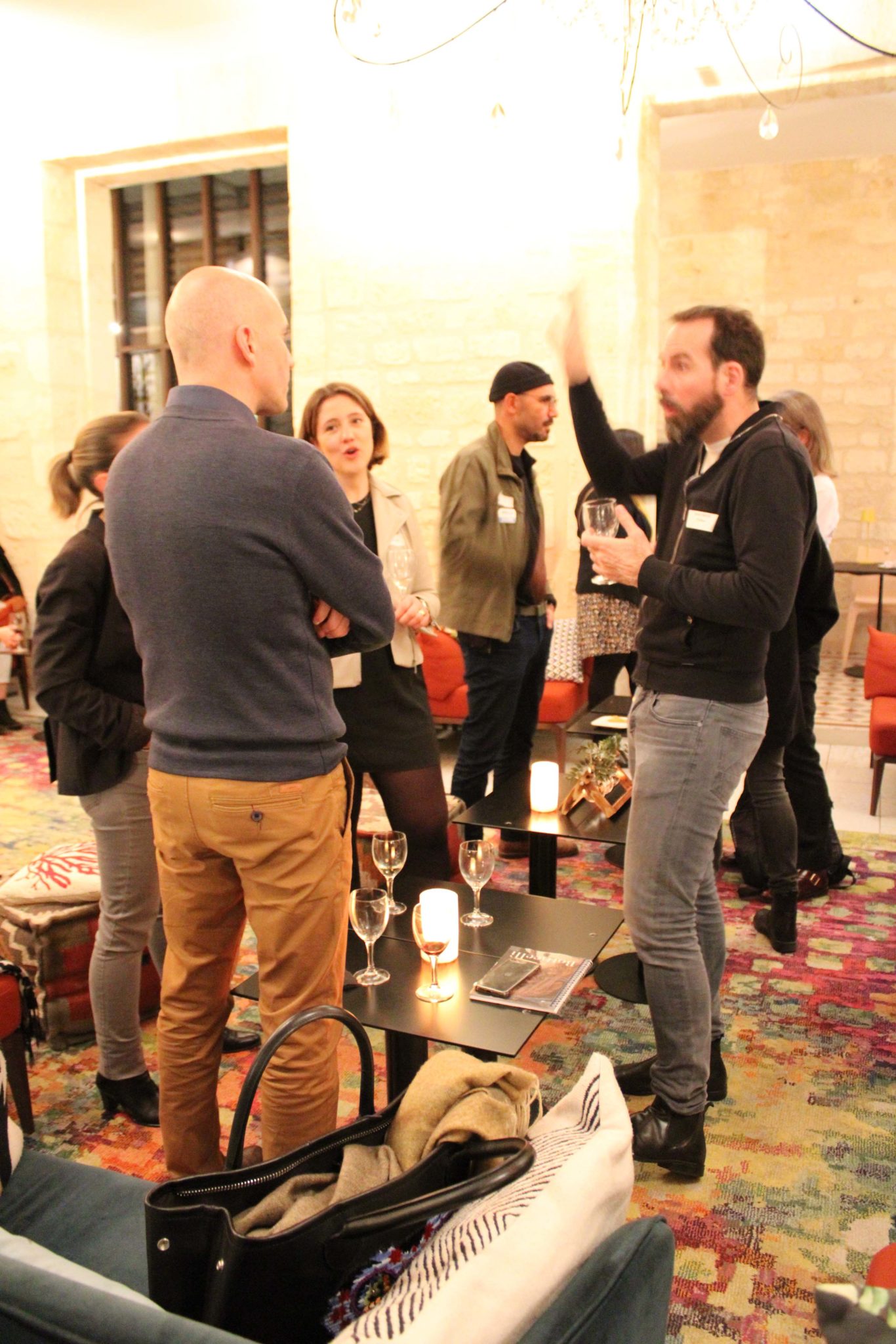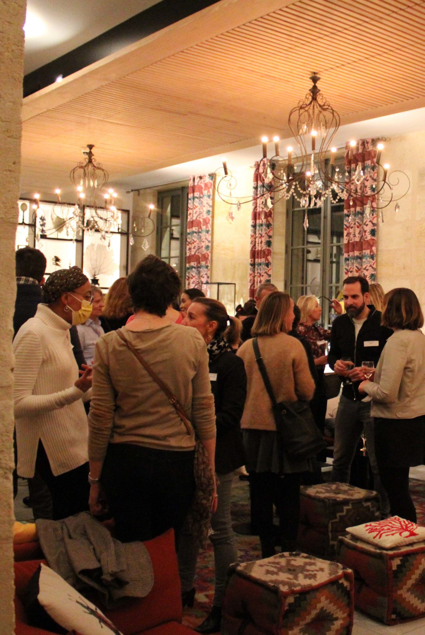 Traduction : ci-dessous une collection de gens heureux de se retrouver, de se rencontrer, et de discuter autour d’un verre en grignotant…